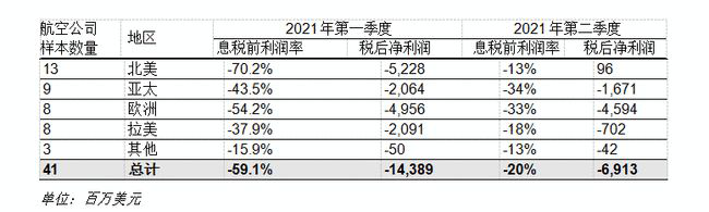 2021年第二季度航空公司凈虧損減少